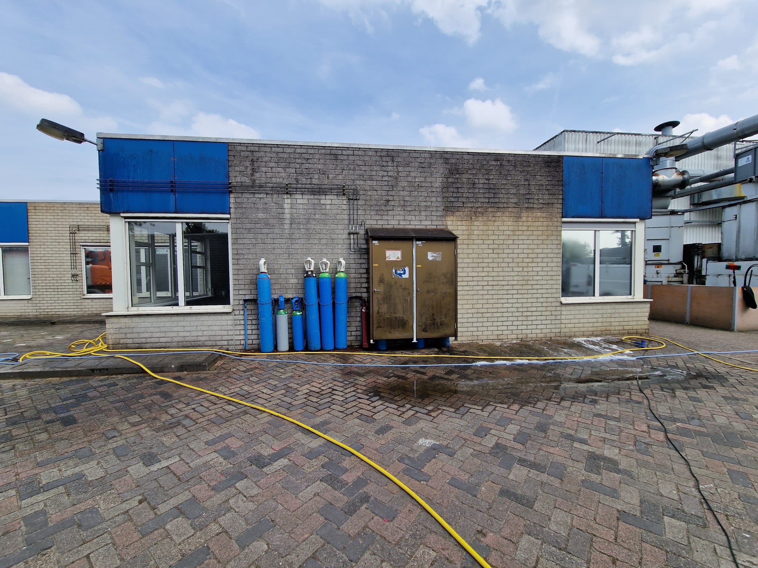 De gevel van dit pand was in de loop der tijd sterk vervuild geraakt. Het gebouw was zichtbaar zwart uitgeslagen en verloor daarmee zijn representatieve uitstraling. De eerste gedachte was om de gevel volledig te vervangen. Er lag al een plan klaar, wat bij een pand van deze omvang een flinke investering zou betekenen. Dat bleek niet nodig. Met een proefstuk aan de voorzijde hebben we laten zien wat er mogelijk is met de juiste reinigingstechniek. Het verschil was direct zichtbaar en de oorspronkelijke uitstraling kwam terug. Het resultaat is een schoon en representatief pand, zonder hoge kosten voor vervanging. Inmiddels wordt het onderhoud jaarlijks uitgevoerd, zodat de gevel in goede staat blijft en vervuiling zich niet opnieuw kan opbouwen.