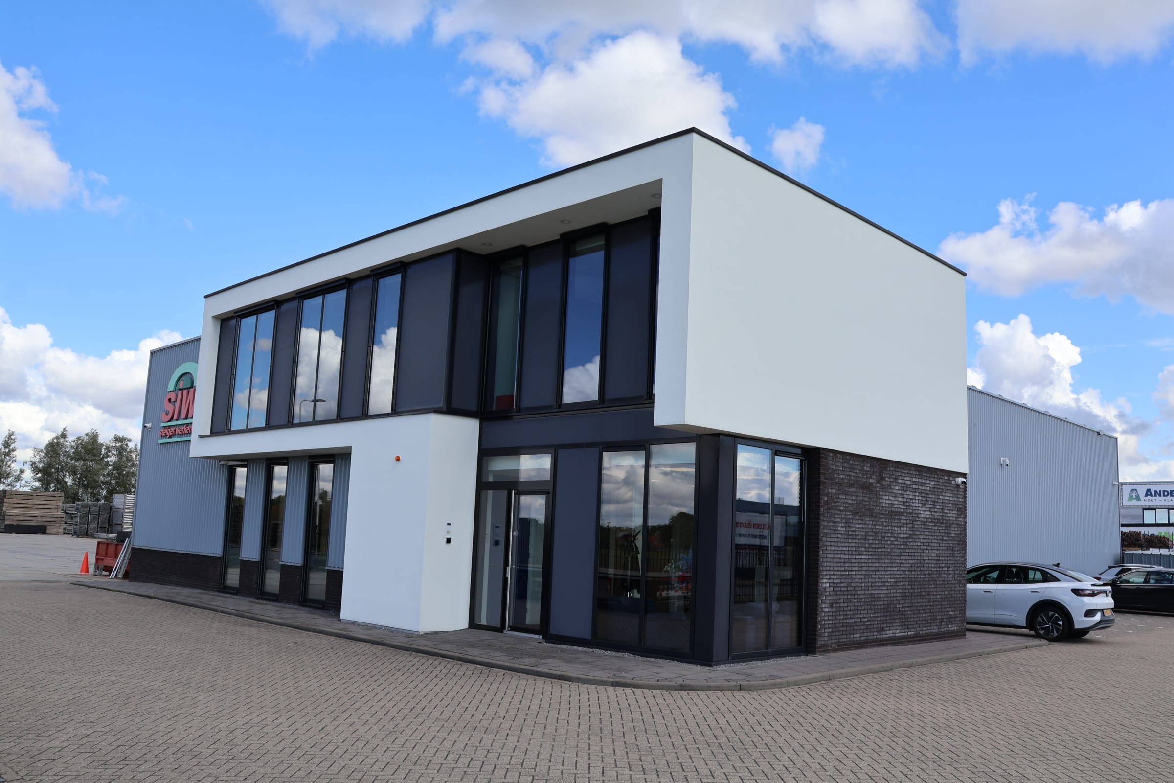 Bij veel bedrijfspanden wordt onderhoud pas opgepakt wanneer het zichtbaar nodig is. Het gevolg is dat vervuiling zich opbouwt en het pand langzaam zijn uitstraling verliest. Voor SIW Steigerbouw was dat geen optie! Het pand moet er altijd netjes en professioneel bij staan, zonder dat daar continu aandacht voor nodig is. Daarom is gekozen voor een structurele aanpak. Het onderhoud wordt op vaste momenten uitgevoerd, waaronder de maandelijkse glasbewassing. Zo blijft het pand doorlopend representatief. Daarnaast wordt er niet alleen uitgevoerd, maar ook meegedacht. Wanneer wij zien dat de gevel vervuilt of het straatwerk aandacht nodig heeft, wordt dit direct opgepakt. Zonder dat daar eerst actie voor nodig is vanuit de klant. Het resultaat is een pand dat het hele jaar door verzorgd oogt, zonder losse acties of extra sturing.